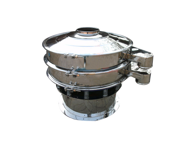 旋振篩(圓形振動篩)由立式振動電機作激振源,因為其上下端重錘安裝在發動軸兩側,使電機的旋轉運動轉變為垂直、水平、傾斜的三次元運動。  旋振篩產品特點:  設計精巧,耐用,適合任何粉類以及粘性液體的篩分。  操作簡單,換網方便,易于清洗。  篩網無阻塞,粉末無飛揚?! ‰s質以及粗料自動排出,并且可以與給料設備、輸送設備配套使用,處理量大,生產效率高。  尺寸小,節省空間,易于移動?! ∫子陴B護,可單層或多層使用。  篩網設計合理耐用,換網只需3-5分鐘?! 『Y網可達5層,篩分出6種不同顆粒大小的物料